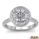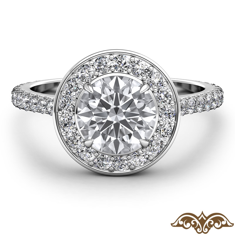 Crown Halo French U Cut Pave style Engagement Ring, center is Round shape Diamond Report by IGI, D Color & VS1 clarity, Made in 14k White Gold (1.74 ct. tw.)