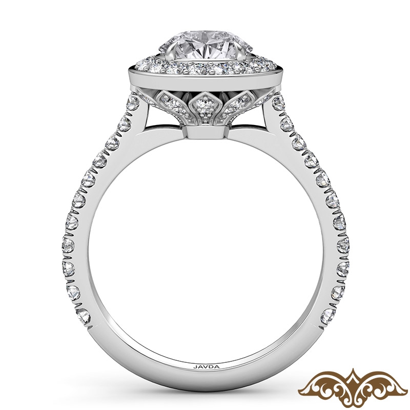 Petal Basket Round Semi Mount 14k White Gold Halo Diamond Engagement Ring 0.7Ct.