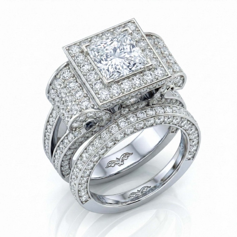 3.4Ct Diamond Engagement Ring Princess Halo Bridal Sets 14k White Gold Setting - javda.com