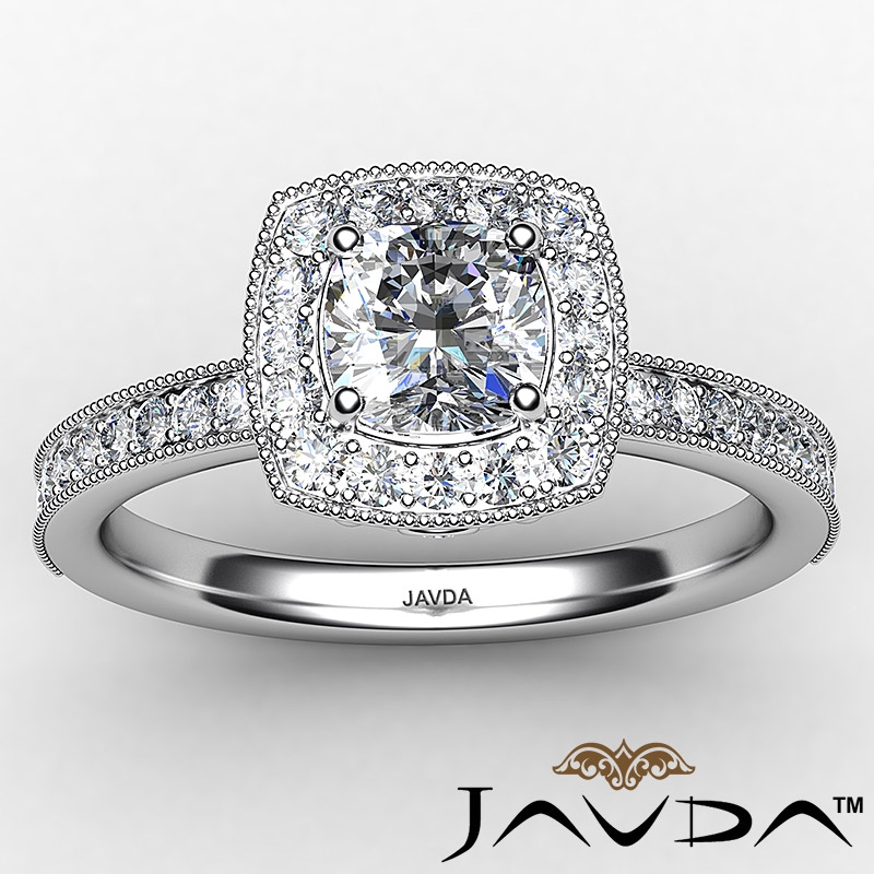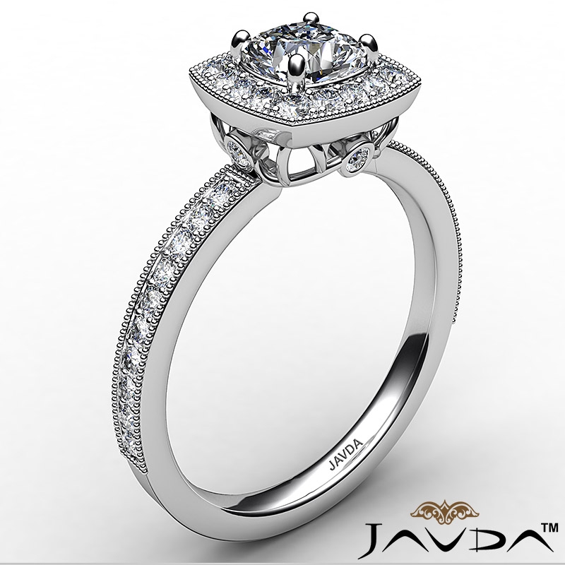 Halo Pave Set Diamond Engagement 14k White Gold Cushion Semi Mount Ring 0.5Ct.
