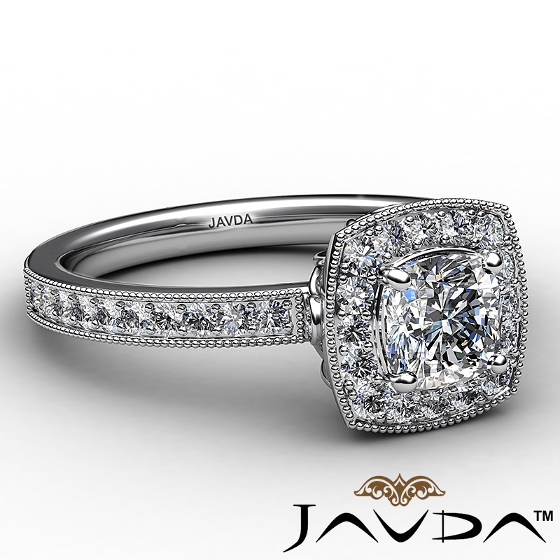 style Engagement Ring, center is Cushion shape Diamond Report by GIA, D Color & VS1 clarity, Made in 14k White Gold (1 ct. tw.)
