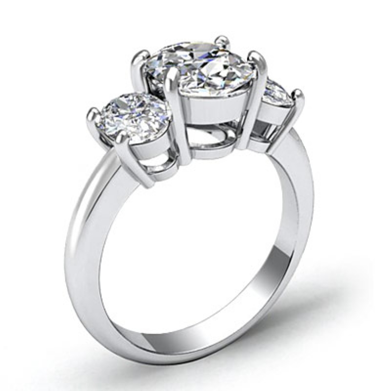 Basket Prong 3 Stone style Engagement Ring, center is Oval shape Diamond Report by GIA, I Color & SI1 clarity, Made in 14k White Gold (1.91 ct. tw.)