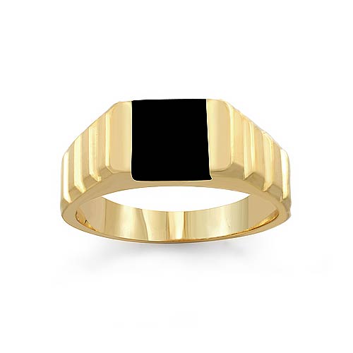 14 karat solid yellow gold and black square onyx ring for ladies.