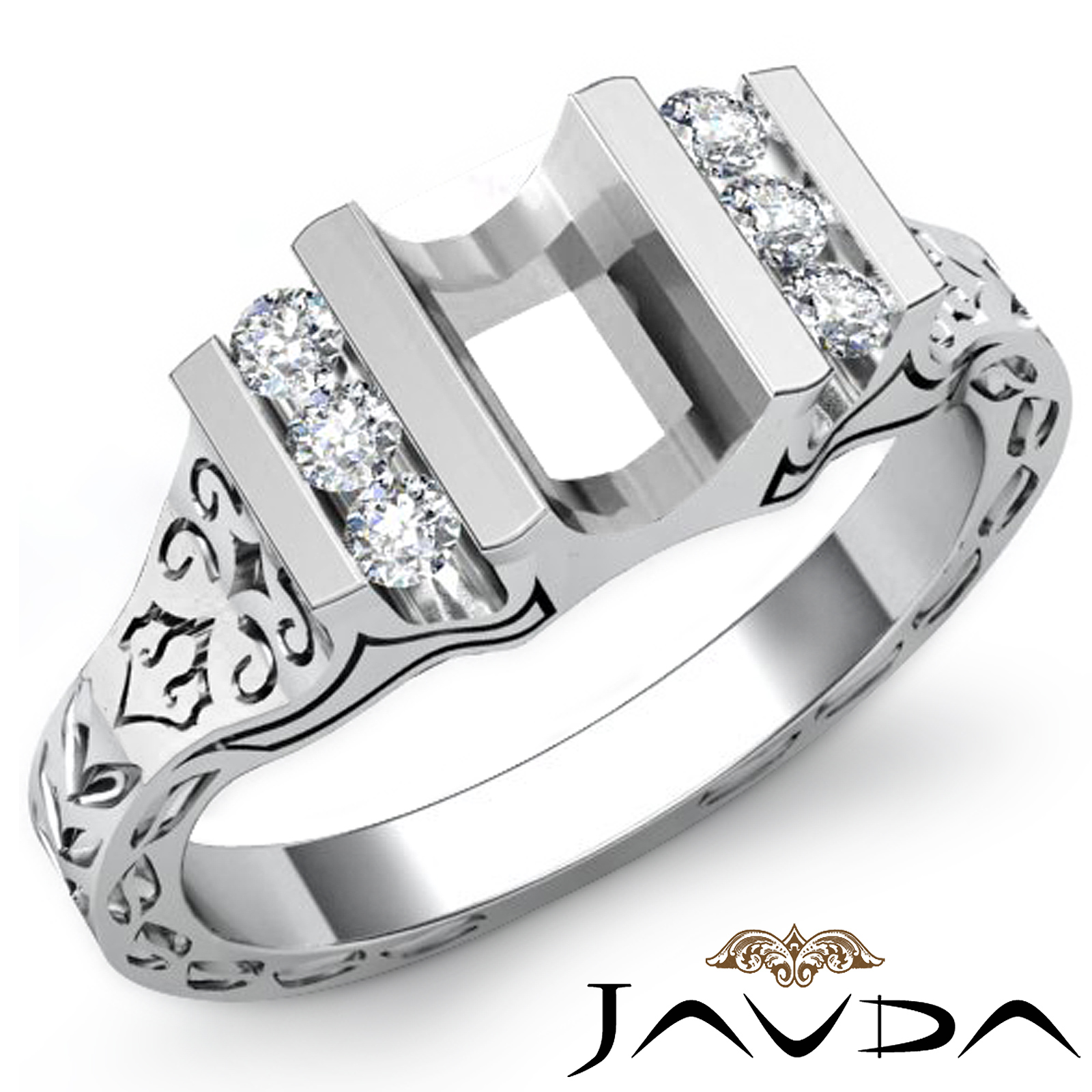 0.20ctw Carved Design Emerald Diamond Engagement Ring Setting 14K Gold
