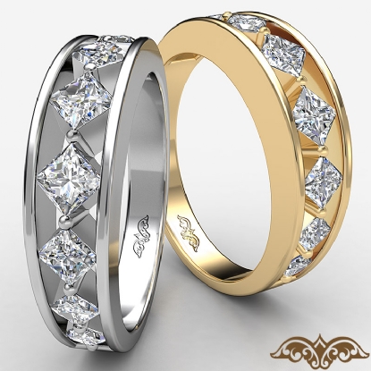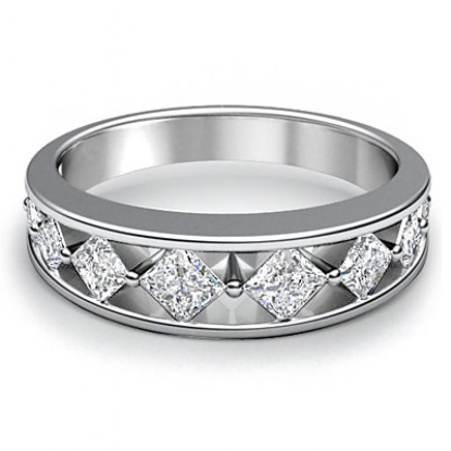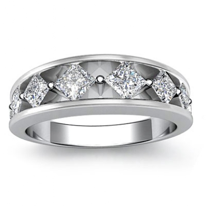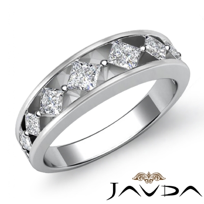Princess Prong Channel Set Diamond Women Half Wedding Band 14k WGold Ring 0.8Ct