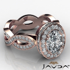 Halo Pave Set Infinity Shank Oval diamond Ring in 18k Rose Gold