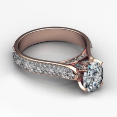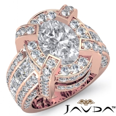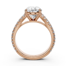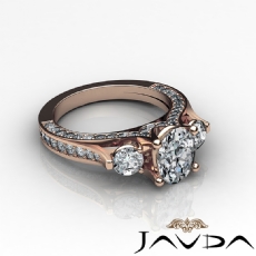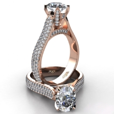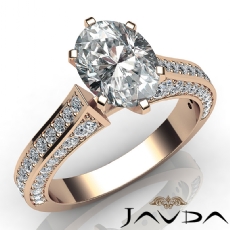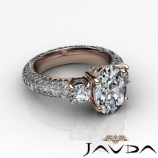 4 Row Pave Shank Three Stone Oval diamond engagement Ring in 18k Rose Gold
