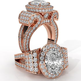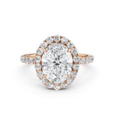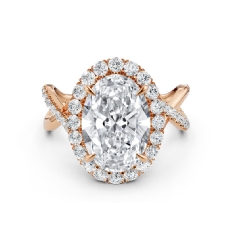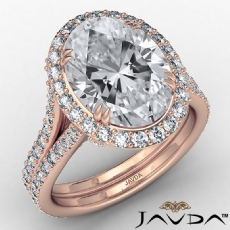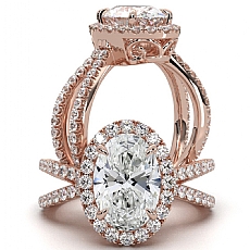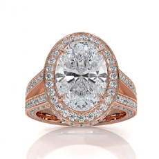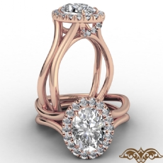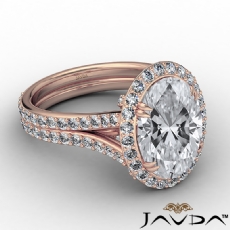 Popular Split Shank Halo Oval diamond engagement Ring in 18k Rose Gold