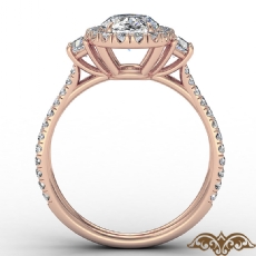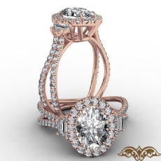 Baguette Three Stone Halo Pave Oval diamond Ring in 18k Rose Gold