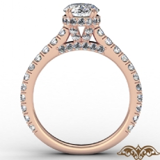 French U Cut Pave Crown halo Oval diamond Ring in 18k Rose Gold