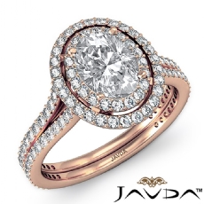 Eternity Halo Micro Pave Set Oval diamond engagement Ring in 18k Rose Gold