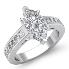 Channel Set Shank Prong Marquise diamond engagement Ring in 14k Gold White