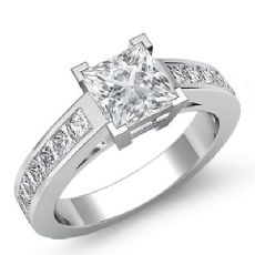 Channel Set Sidestone Princess diamond engagement Ring in 14k Gold White