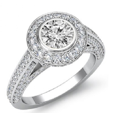 Halo Pave Bezel Set Round diamond engagement Ring in 14k Gold White