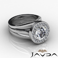 Bezel Gala Halo Bridal Set Round diamond engagement Ring in 14k Gold White