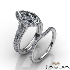 Split Shank Halo Bridal Sets Marquise diamond engagement Ring in 14k Gold White