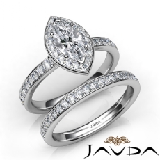Bezel Halo Bridal Set Pave Marquise diamond engagement Ring in 14k Gold White
