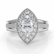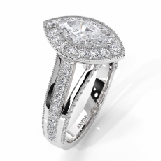 Split Shank Halo Micropave Set Marquise diamond Ring in 14k Gold White