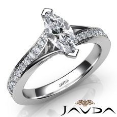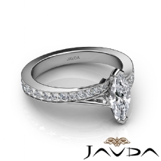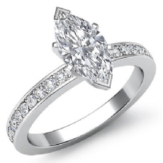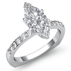 Pave Set Classic Sidestone Marquise diamond engagement Ring in 14k Gold White