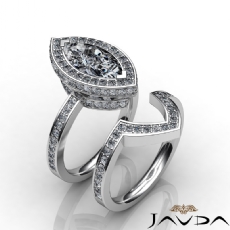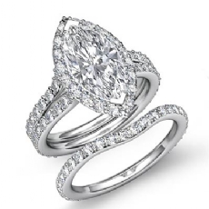 Halo Bridal Set Pave Setting Marquise diamond engagement Ring in 14k Gold White