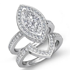Trio Band Halo Pave Bridal Set Marquise diamond Ring in 14k Gold White