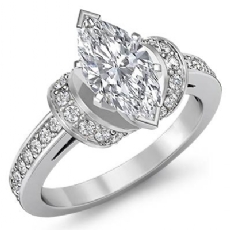 Designer Shank Halo Pave Marquise diamond engagement Ring in 14k Gold White