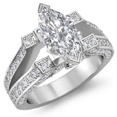 Vintage Split Shank Pave Marquise diamond engagement Ring in 14k Gold White