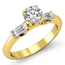 Baguette Channel Set 4 Prong Round diamond Ring in 14k Gold Yellow