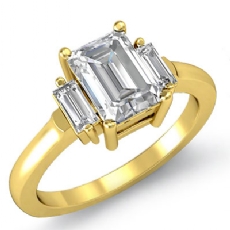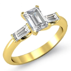 Baguette Three Stone Halo Pave Emerald diamond Ring in 14k Gold Yellow