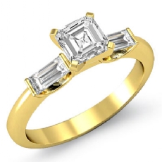 Baguette Three Stone Halo Pave Asscher diamond Ring in 14k Gold Yellow