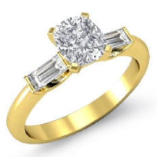 Baguette Three Stone Halo Pave Cushion diamond Ring in 14k Gold Yellow