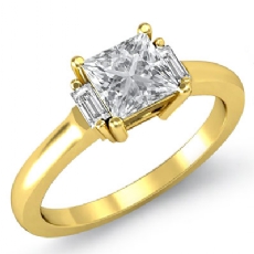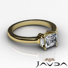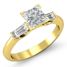 Baguette Three Stone Halo Pave Princess diamond Ring in 14k Gold Yellow