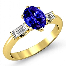 Baguette Three Stone Halo Pave Oval diamond Ring in 14k Gold Yellow