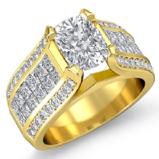 Invisible Setting Shank Cushion diamond engagement Ring in 14k Gold Yellow