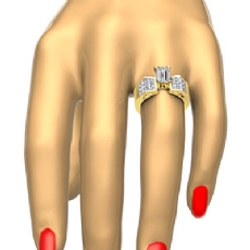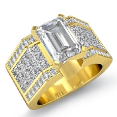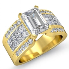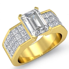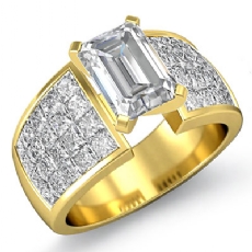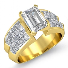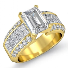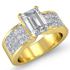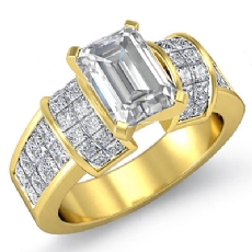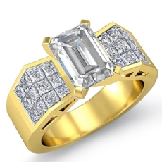 Classic Side-Stone Invisible Emerald diamond engagement Ring in 14k Gold Yellow