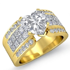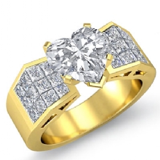 Classic Side-Stone Invisible Marquise diamond engagement Ring in 14k Gold Yellow
