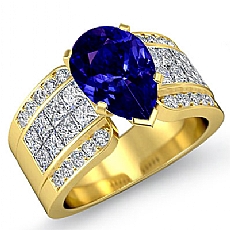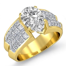 Classic Side-Stone Invisible Pear diamond engagement Ring in 14k Gold Yellow