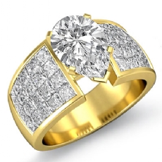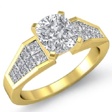 Sidestone Invisible Set Oval diamond engagement Ring in 14k Gold Yellow