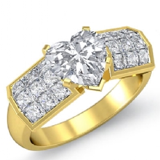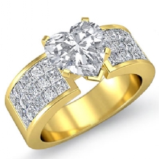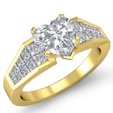 Classic Side-Stone Invisible Heart diamond engagement Ring in 14k Gold Yellow