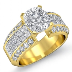 Invisible Setting Shank Oval diamond engagement Ring in 14k Gold Yellow