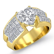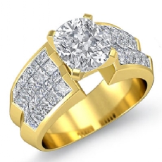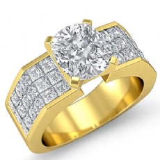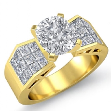 Classic Side-Stone Invisible Cushion diamond engagement Ring in 14k Gold Yellow