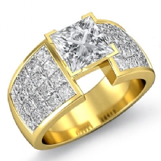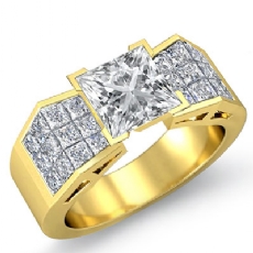 Invisible Setting Shank Princess diamond engagement Ring in 14k Gold Yellow