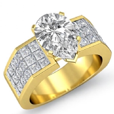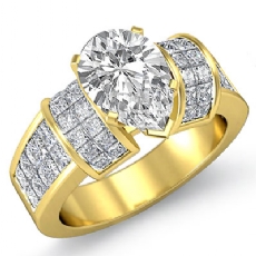 Invisible Setting Shank Pear diamond engagement Ring in 14k Gold Yellow