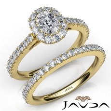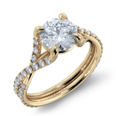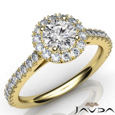 French V Cut Pave Set Halo Round diamond Ring in 14k Gold Yellow