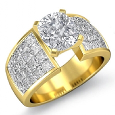 Classic Side Stone Invisible Cushion diamond engagement Ring in 14k Gold Yellow