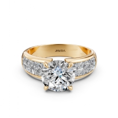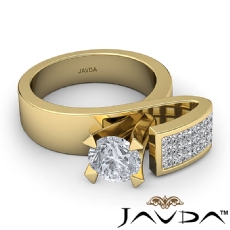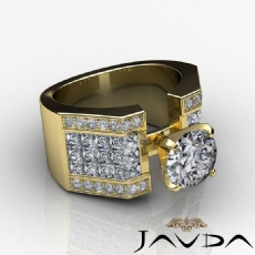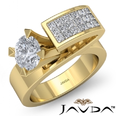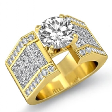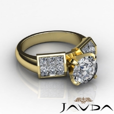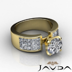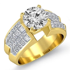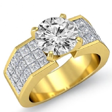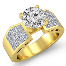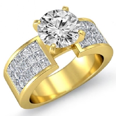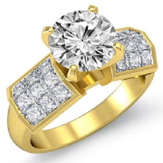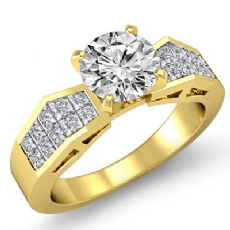 Classic Side-Stone Invisible Round diamond engagement Ring in 14k Gold Yellow