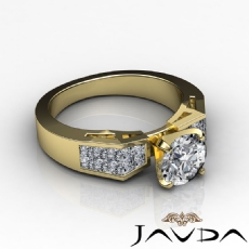 Classic Side Stone 4 Prong Round diamond engagement Ring in 14k Gold Yellow