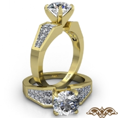 Sidestone Invisible Set Shank Round diamond engagement Ring in 14k Gold Yellow