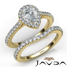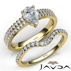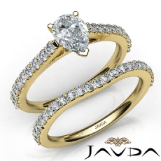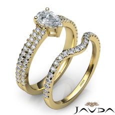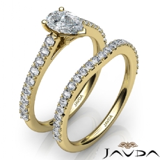 Split V Prong Bridal Set Pear diamond engagement Ring in 14k Gold Yellow