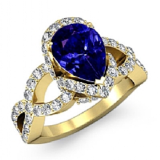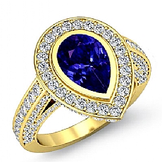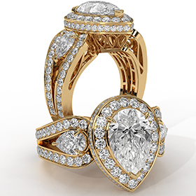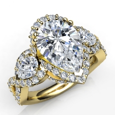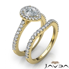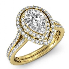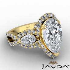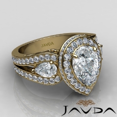 Halo Bezel Setting Sidestone Pear diamond engagement Ring in 14k Gold Yellow